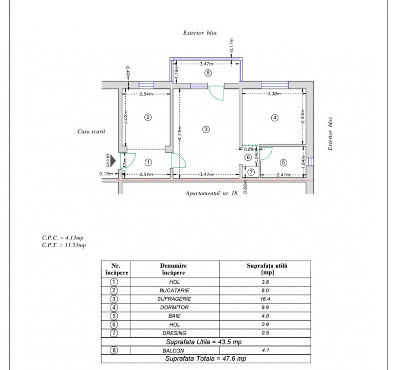 Etaj 4 din 4, retras, intim, bloc reabilitat termic de Primăria Bacău, inclusiv casa scării și hidroizolația de pe imobil (polistiren de 20 deasupra, apoi hidroizolație)