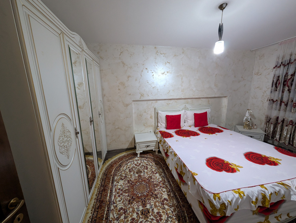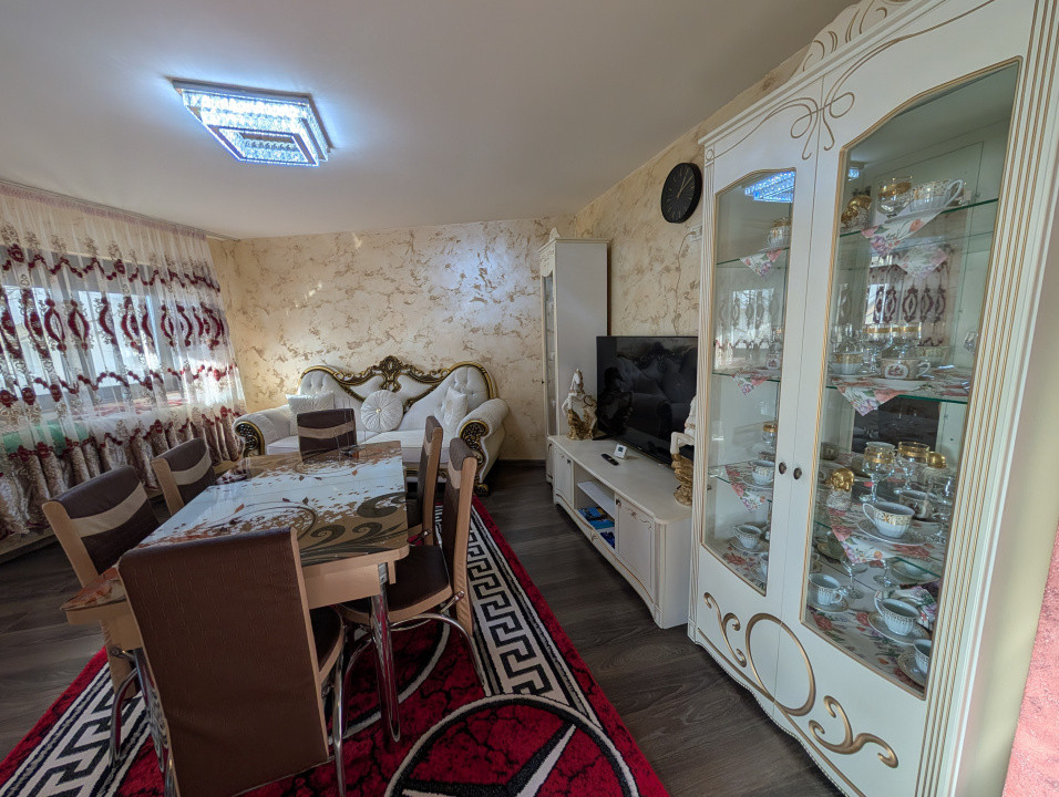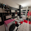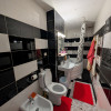 Baie mare cu cada pe colt, bideu, mașina de spălat.