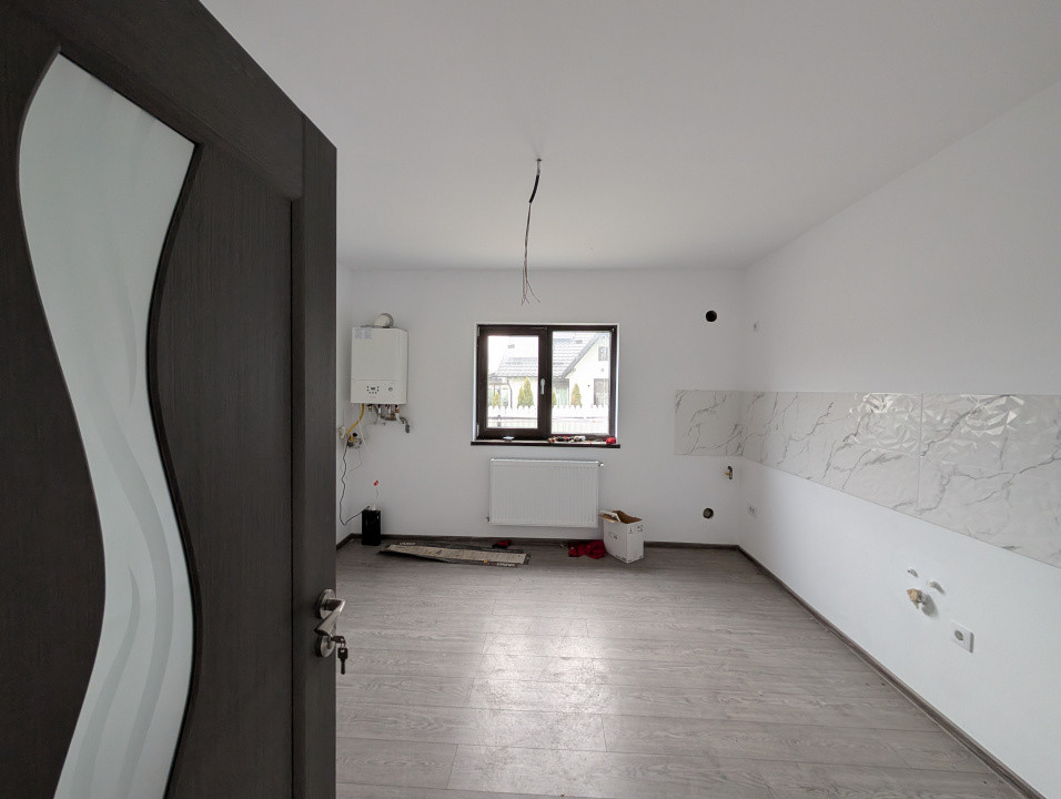 Are doua dormitoare, bucătărie închisă, baie, living mare și hol la intrare.