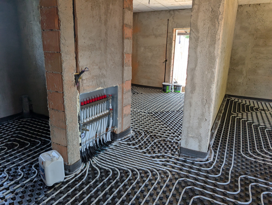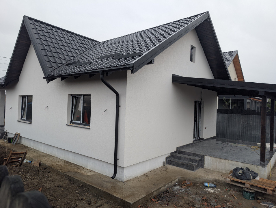 Încălzire pardoseala , izolație in placa de 10cm, izolație exterioara 10cm eps 80, placa beton la pod, tâmplărie salamander triplex .