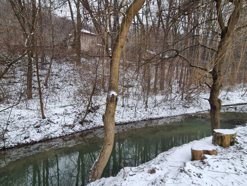 Și gândește-te cum va fi pictat acest loc la primăvară, la vară, la toamnă! Pădure, pârâu, salcie la mal...